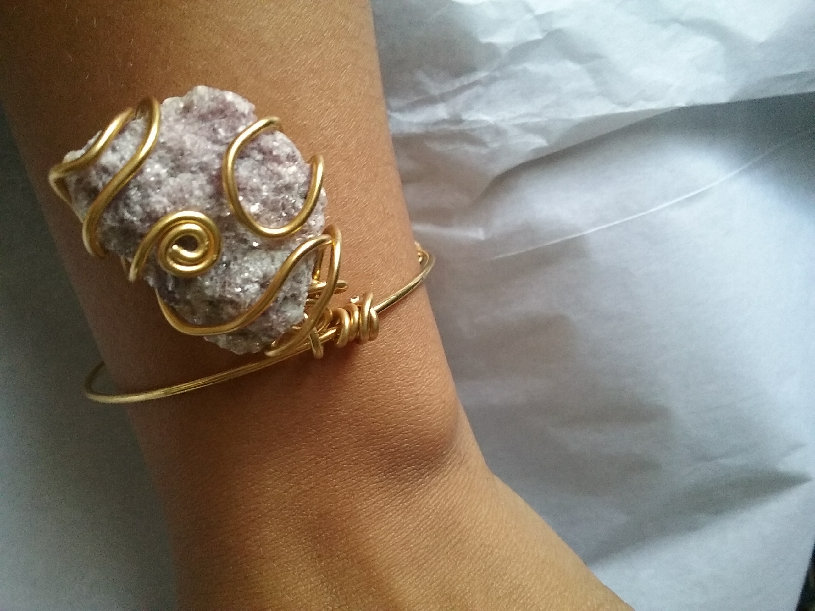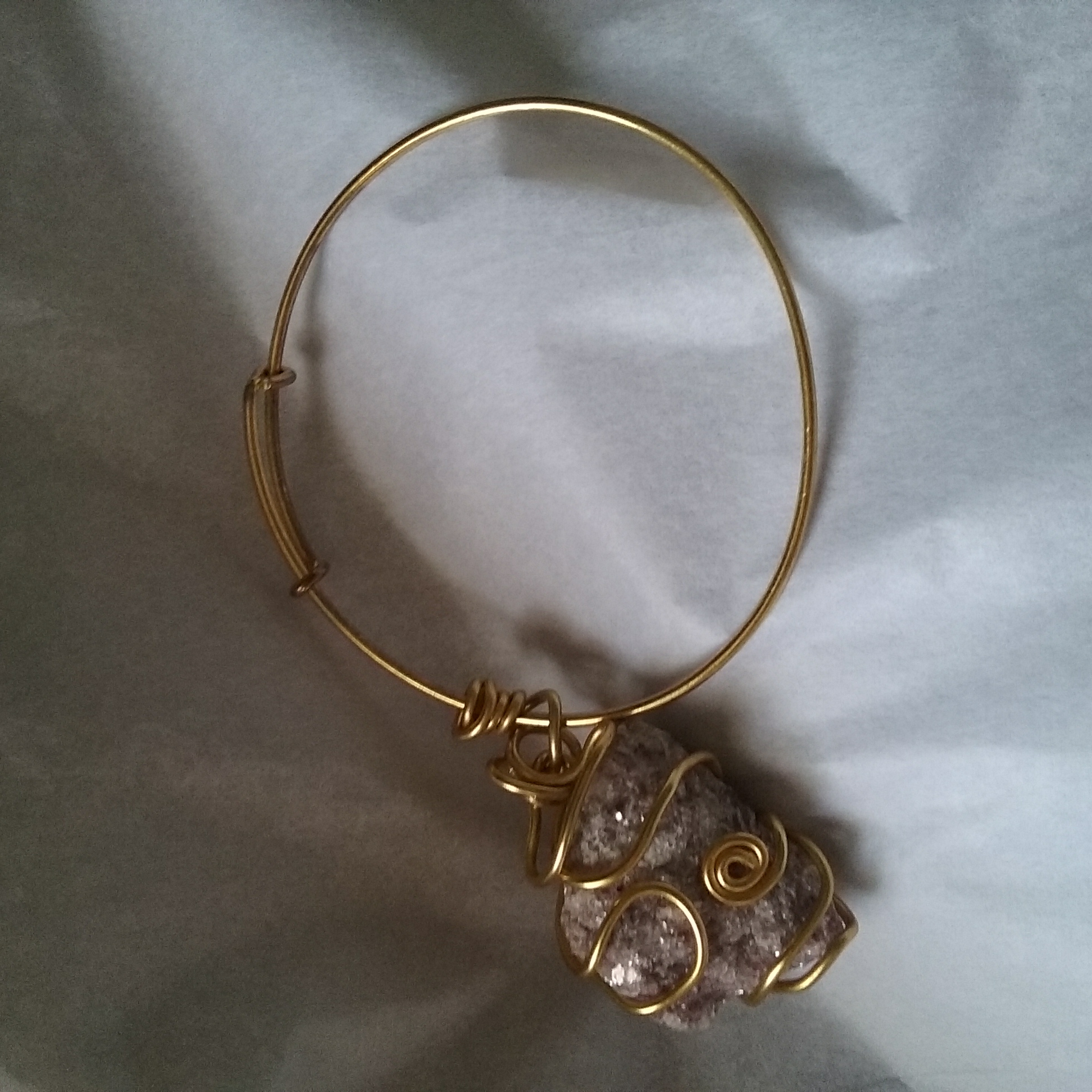 Hand wrapped crystals on an adjustable bracelet. Tap the drop down menu to view different crystal offerings.