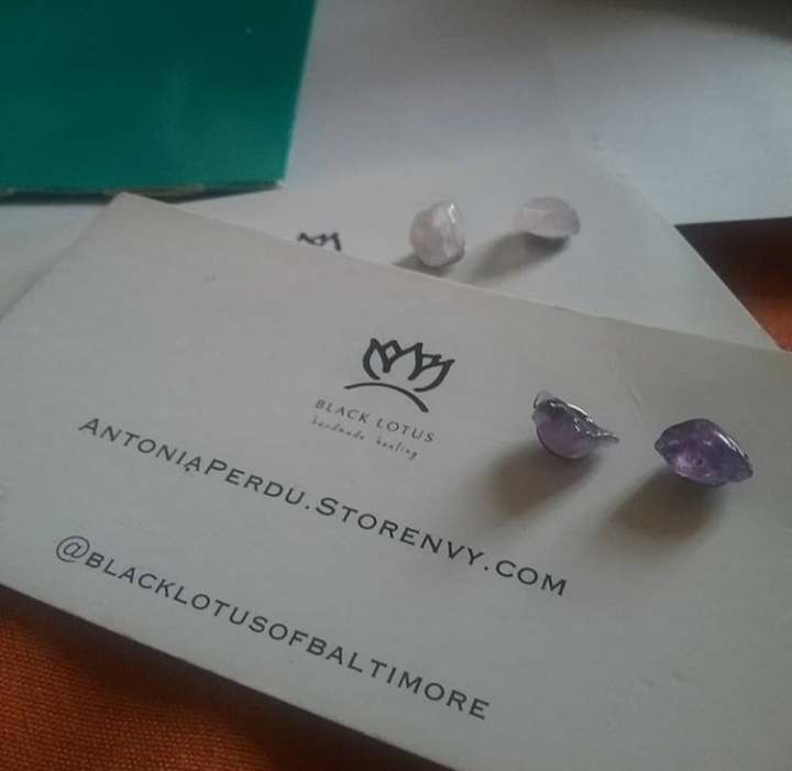 Handmade Rose Quartz Stud earrings. Crystal's have been cleansed with MoonWater and Rosewater. They are charged as well. Amplify loving vibrations. The size of each crystal differs naturally because it is earthmade. I feel that makes it special like you and I two different individuals but still with loving frequencies.