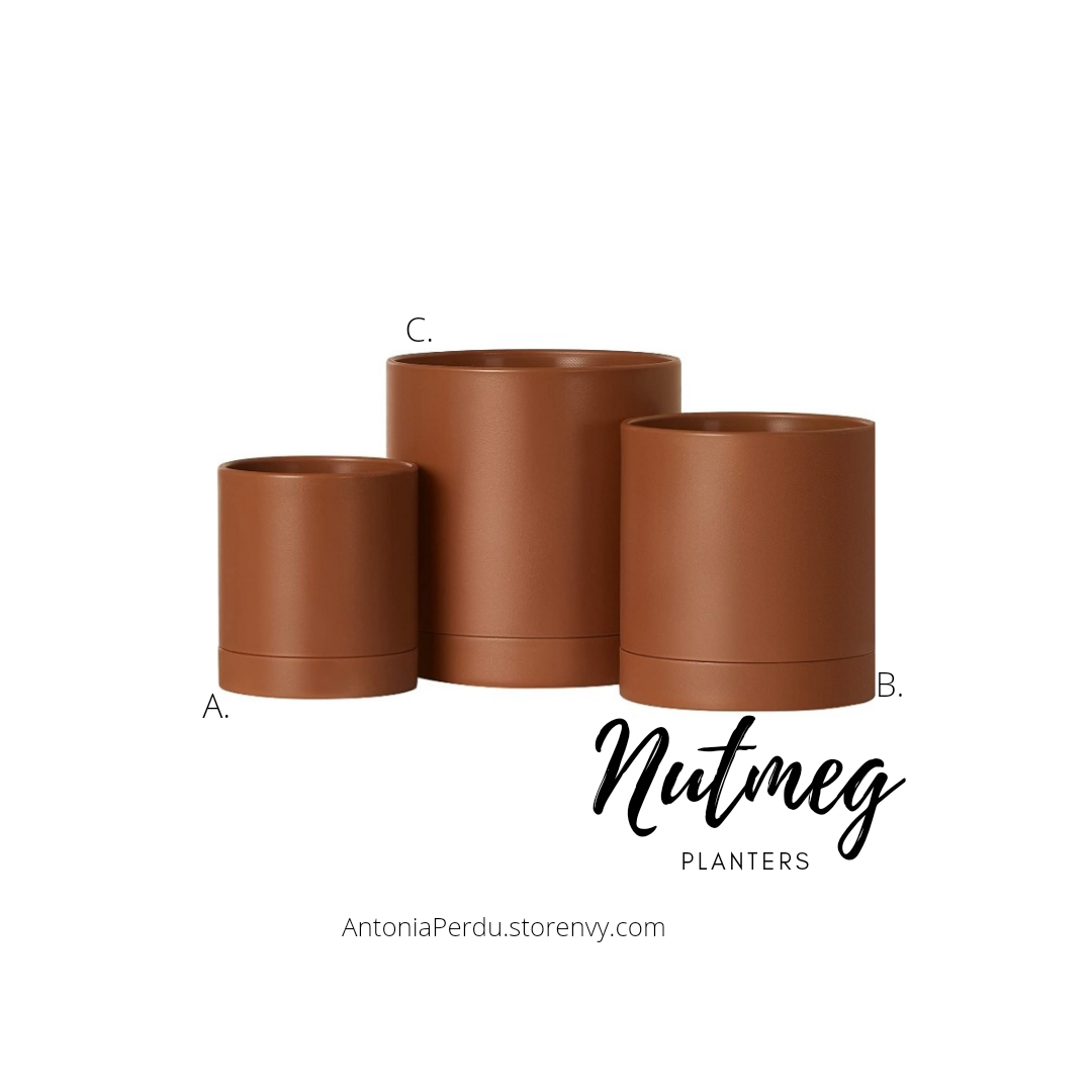 Explore this nutmeg colored plastic planter. 1 each. Not a set. Choose from drop down menu your size. WxH measurements below: A. 4 in. x 4.3 in. B. 5 in. x 5.3 in. C. 6 in. x 6.2 in.